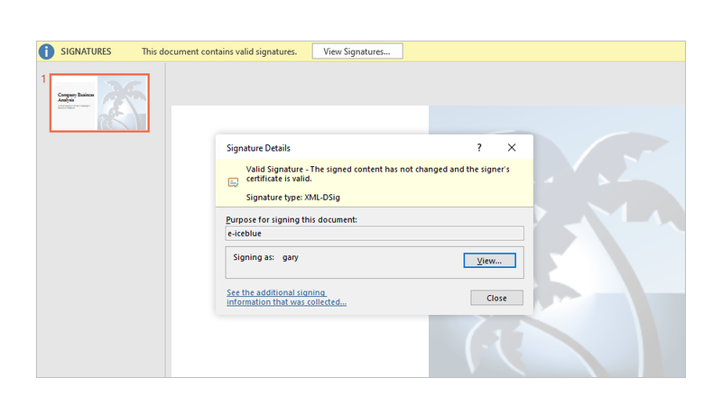 A digital signature provides assurances about the validity and authenticity of your presentation. Once a PowerPoint document is digitally signed, any changes to the document will invalidate the signature.