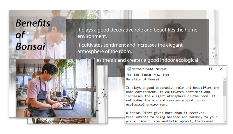 If you only need the text and images of a PowerPoint document regardless of their formatting and layout, you can directly extract them from the document.