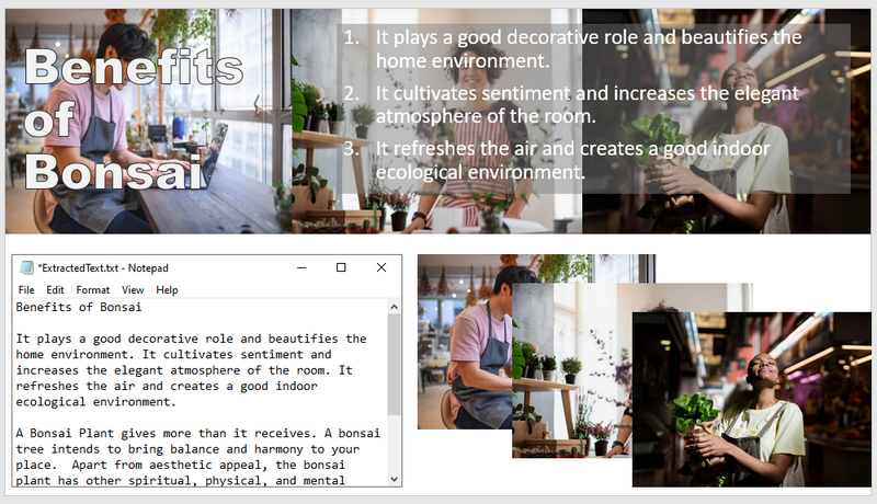 If you only need the text and images of a PowerPoint document regardless of their formatting and layout, you can directly extract them from the document.