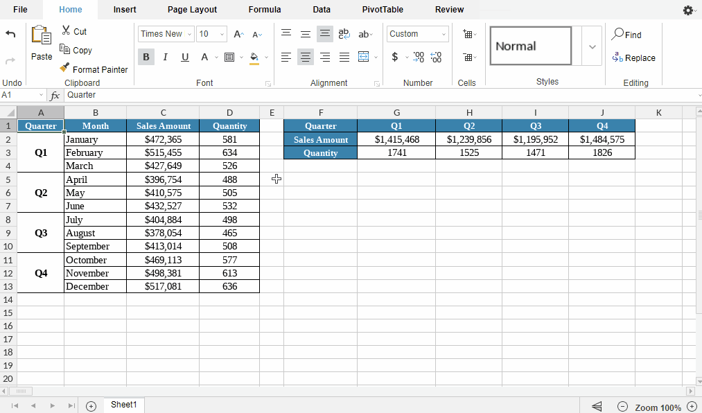 - Group Rows and Columns