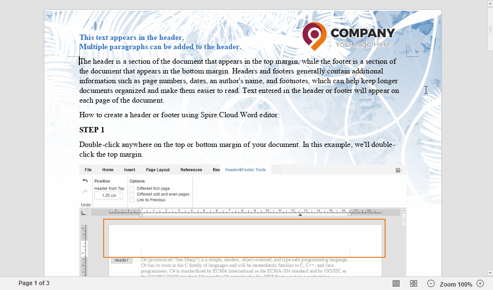 Spire.Cloud.Word is not only a document editor, but also a document viewer. Depending on the application you’re developing, you can choose to view MS Word files in a full screen mode, in an embedded view mode or in a mobile view mode.Document Editing